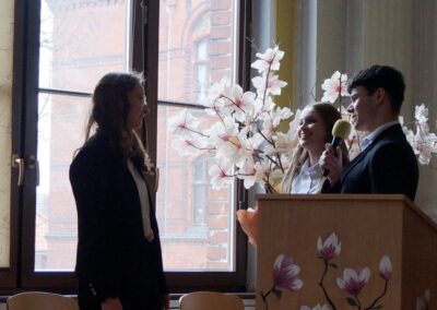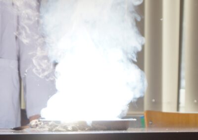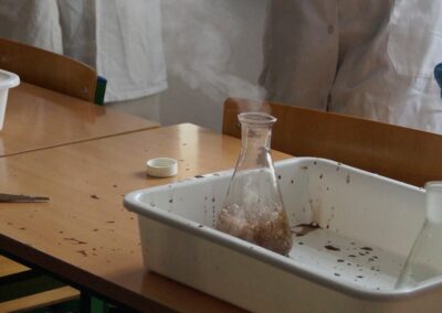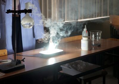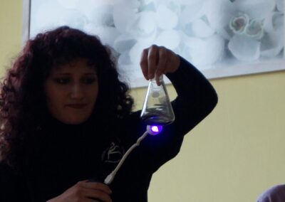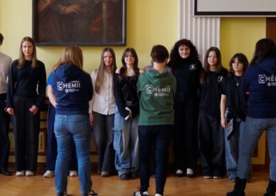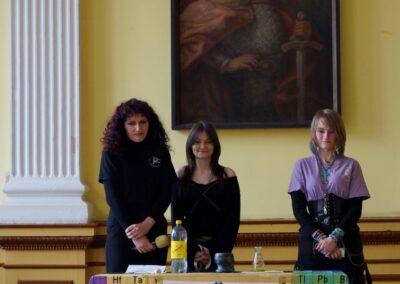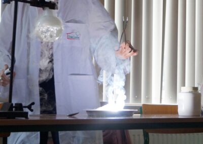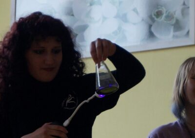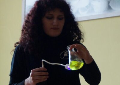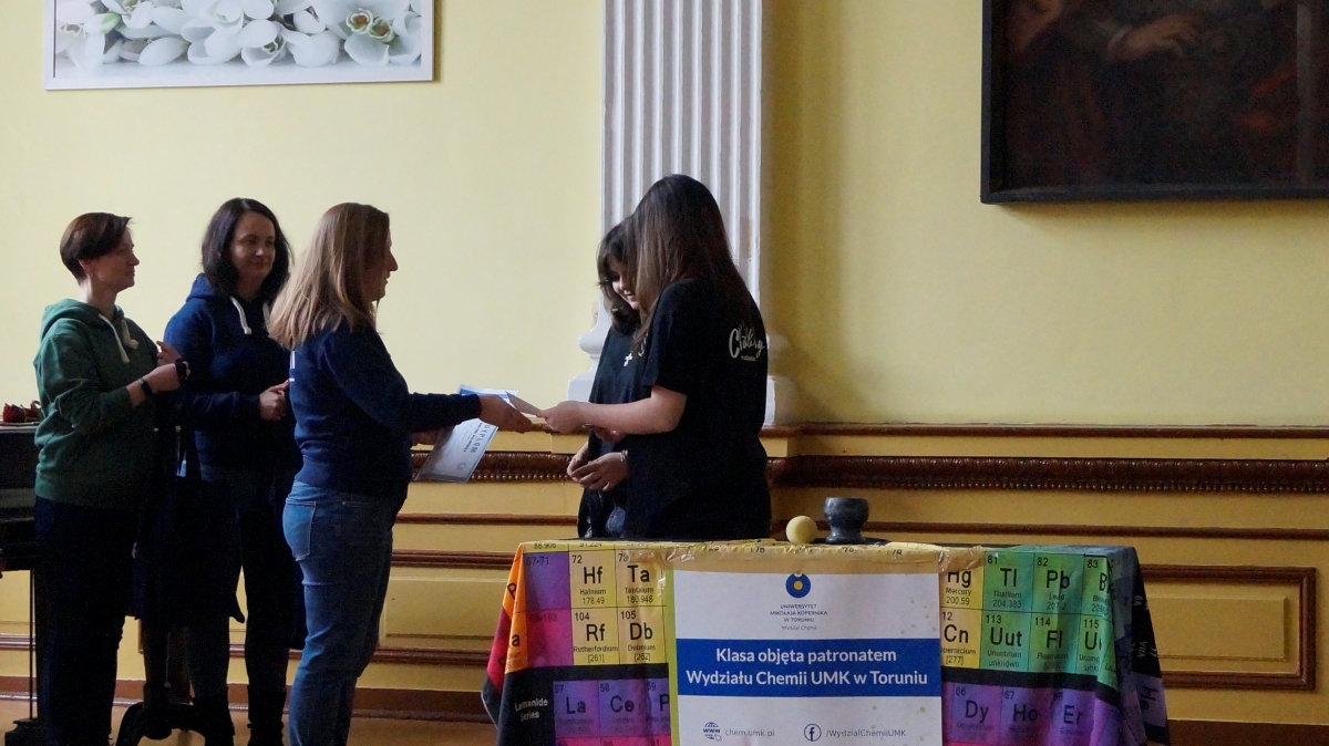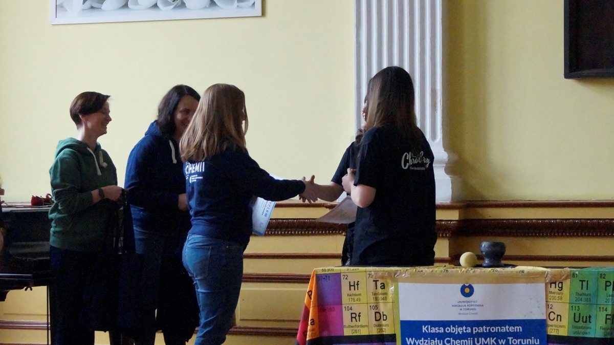 W ramach wydarzenia odbyły się różnorodne pokazy chemiczne, przeprowadzone przez naszych uczniów przy wsparciu pana Łukasza Reimusa. Ukazały one chemię jako pasjonującą naukę obecną w naszym codziennym życiu. W czasie tego dnia mieliśmy okazję gościć w naszej szkole, wybitnych naukowców z UMK: dr.hab. Sylwię Studzińską, dr.hab. Beatę Kaczmarek-Szczepańską oraz dr. Joannę Skopińską-Wiśniewską. Dodatkowo odwiedziła nas nasza absolwentka – p. Julia. Nasi goście utworzyli jury konkursowe w tegorocznym konkursie.