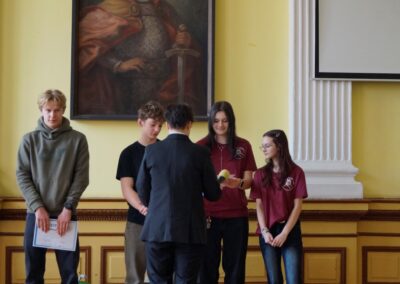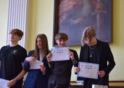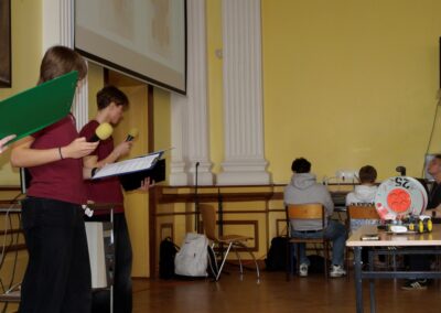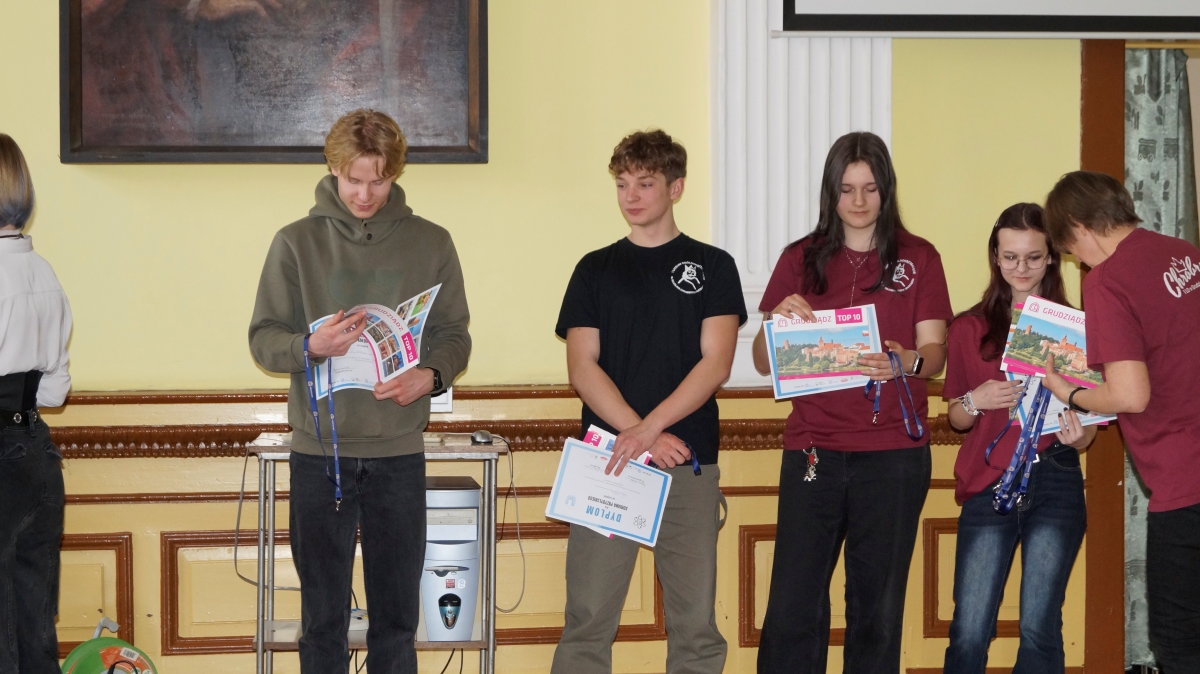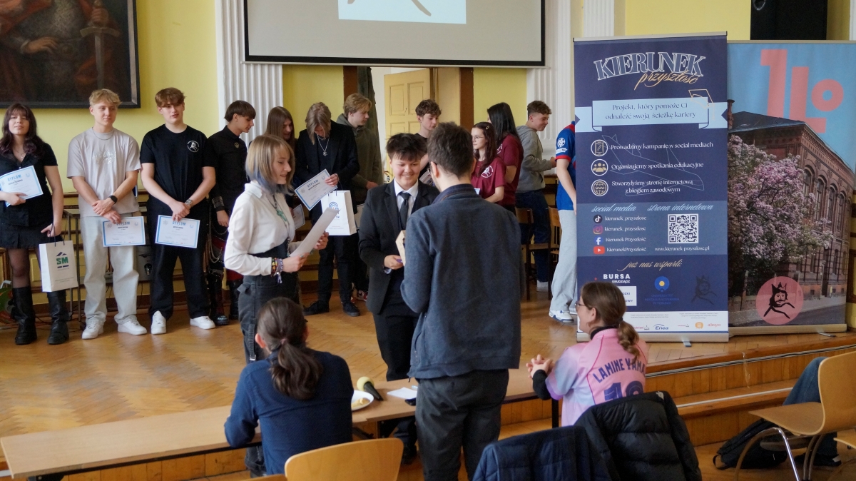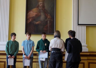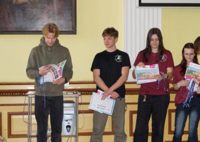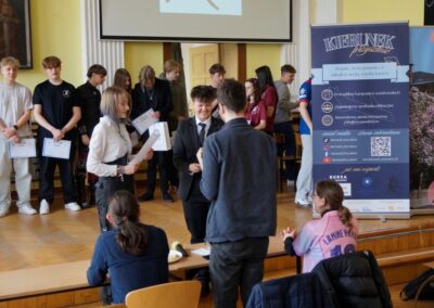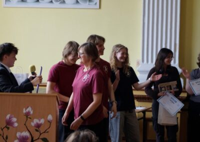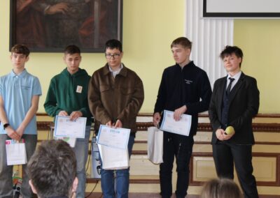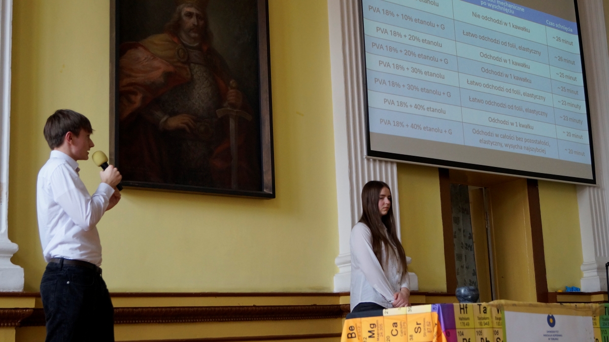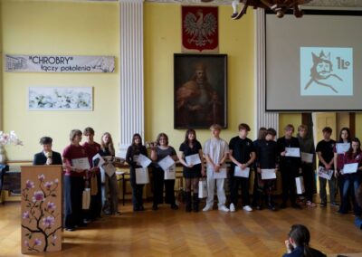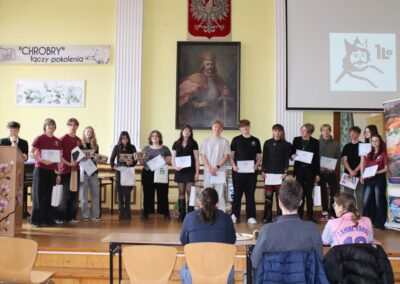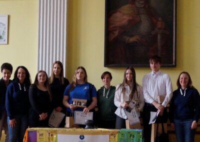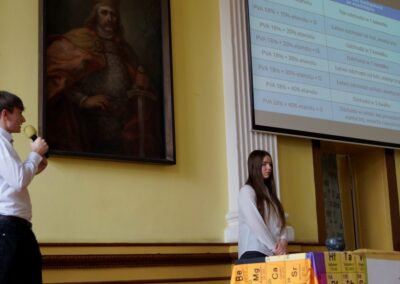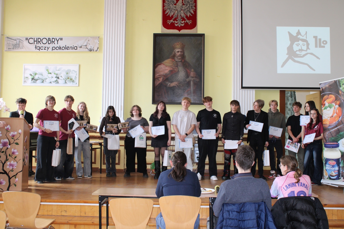 Podczas Dnia Chemii odbył się konkurs na najlepszy projekt chemiczny. W tym roku tematy były różnorodne, a wszyscy uczestnicy wykazali się ogromnym zaangażowaniem i kreatywnością podczas prezentacji swoich badań. Jury miało bardzo trudne zadanie wyłonienia zwycięzców. Tegorocznymi zwycięzcami zostali ex aequo Adam Nawrocki i Michalina Maciejewska, którzy przygotowali projekt pt. „Zastosowanie hydrożeli do celów kosmetycznych oraz w walce z trądzikiem” oraz Wanessa Ceglewska i Liliana Robionek, które przygotowały projekt pt. „Elektrochemiczny rozkład wody”. Obie prace były przygotowane z najwyższą starannością i precyzją.
