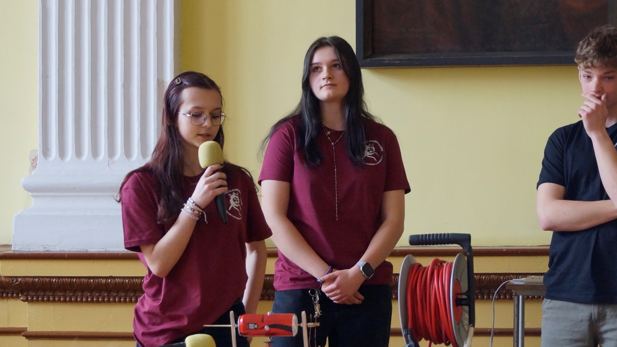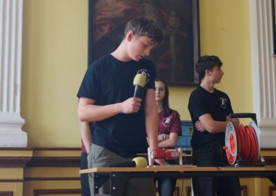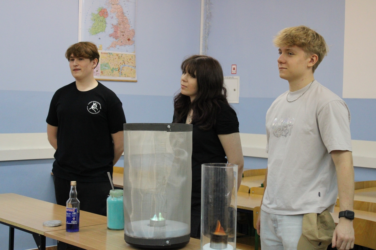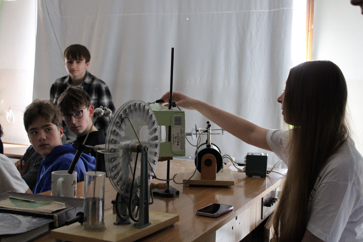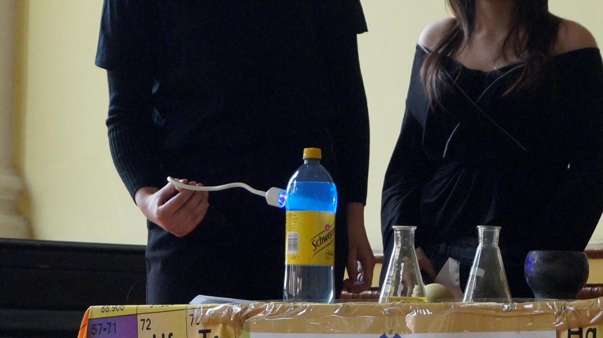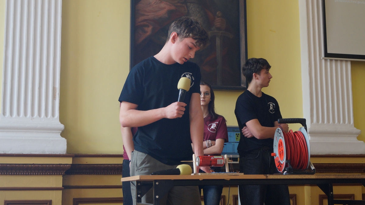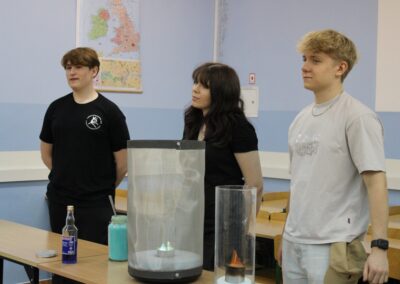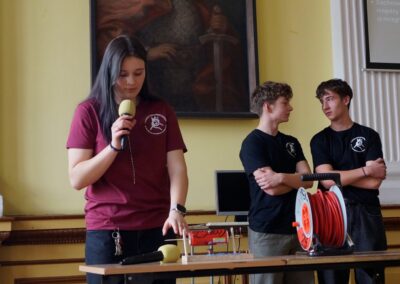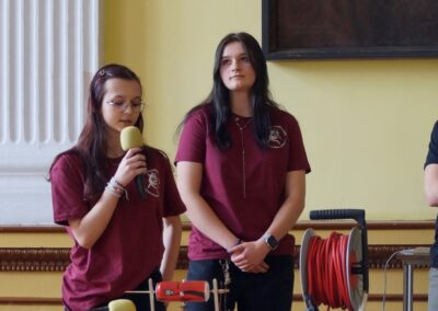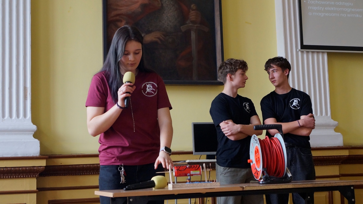 Cała społeczność Chrobrego miała też okazję zobaczyć doświadczenia w pracowni fizycznej zaprezentowane przez uczniów klasy 1d.