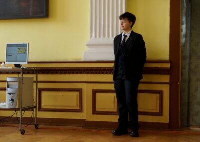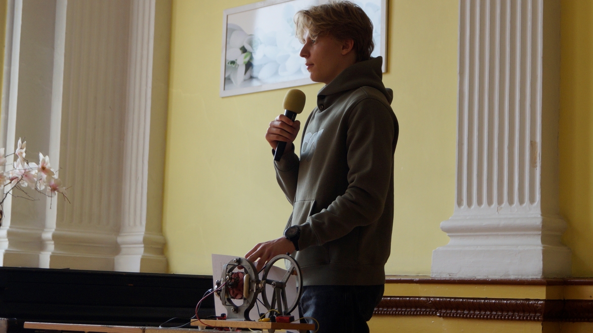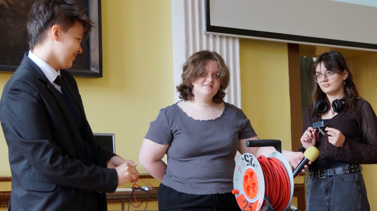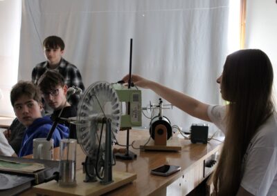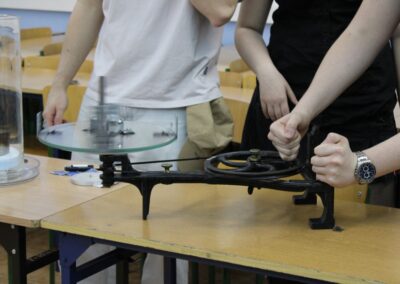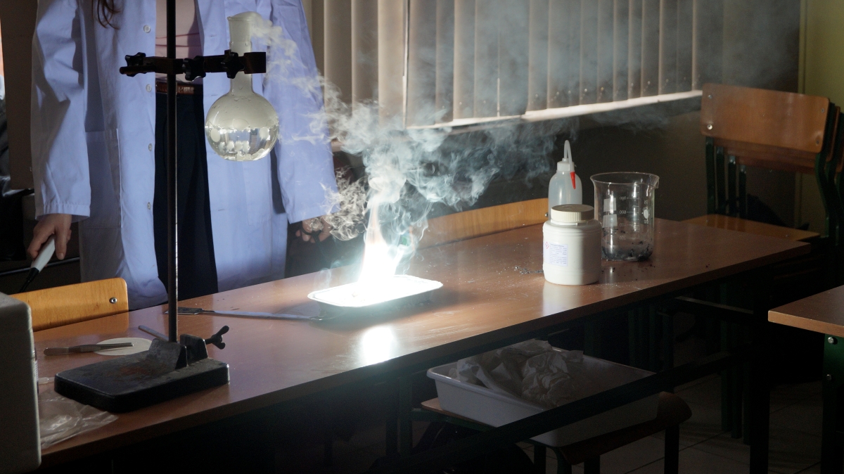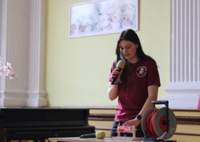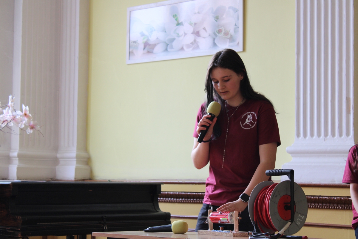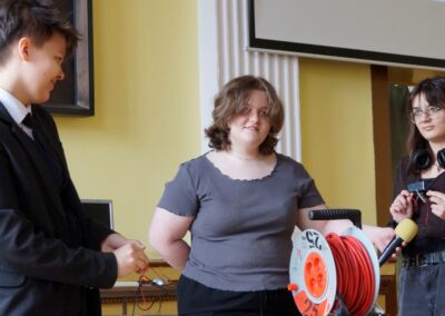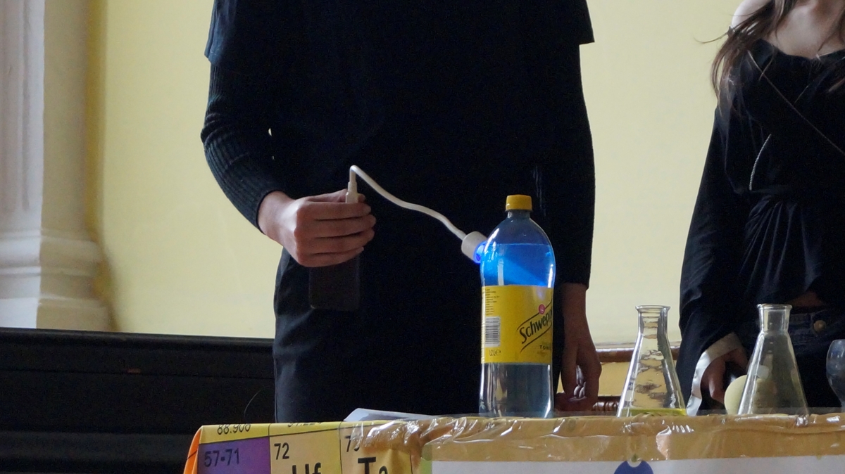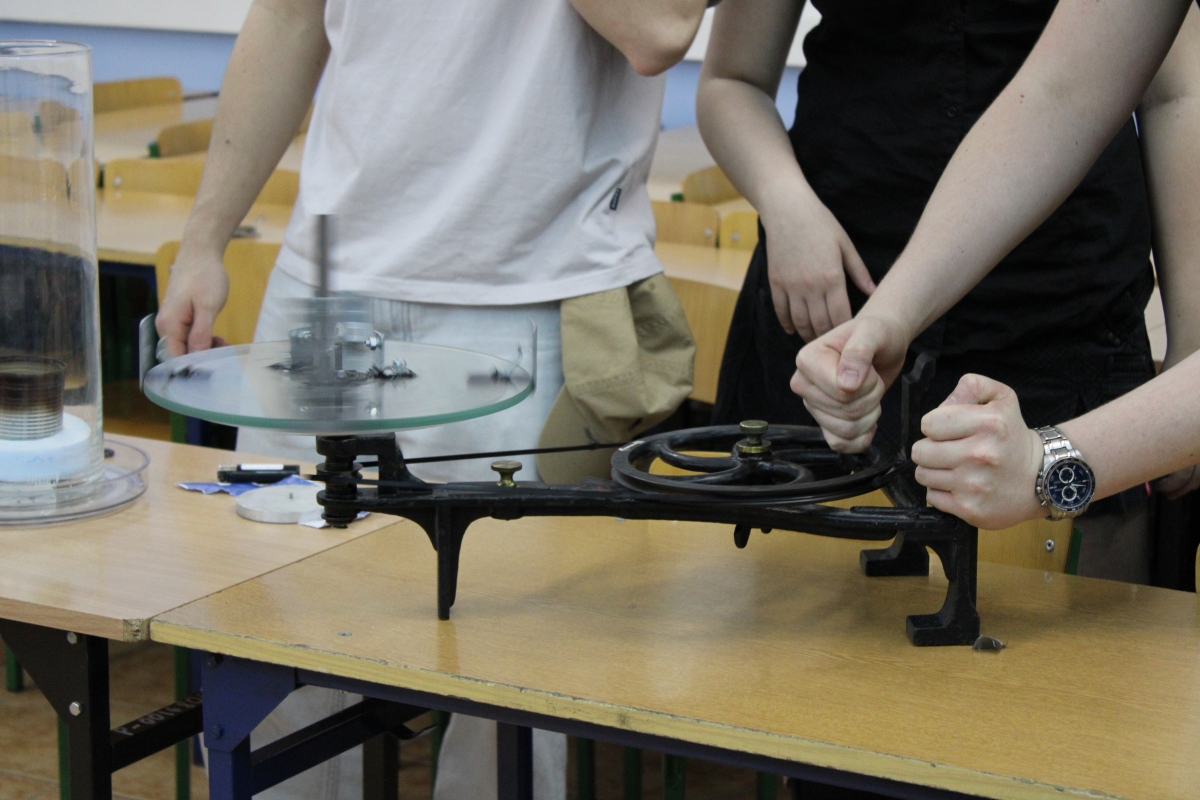 Cała społeczność Chrobrego miała też okazję zobaczyć doświadczenia w pracowni fizycznej zaprezentowane przez uczniów klasy 1d.