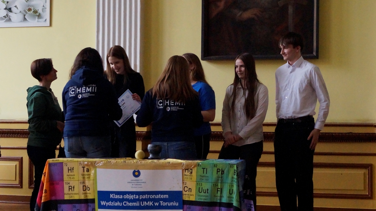 Wzorem ubiegłorocznej edycji, Dzień Chemii odbywał się we współpracy z Wydziałem Chemii Uniwersytetu Mikołaja Kopernika w Toruniu, którego patronatem są objęte klasy: 1c, 2a, 3c, 3e. Dzięki temu mogliśmy zorganizować coś, co długo będzie o sobie przypominać.