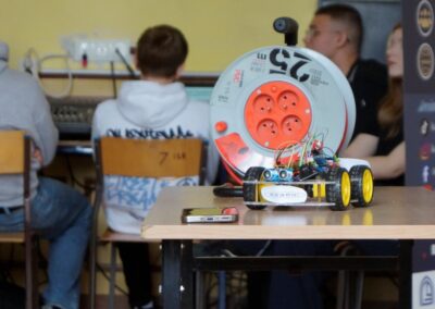 W konkursie wzięło udział 6 zespołów. Zwycięzcami zostali: Lidia Szyszkowska, Wiktor Bączkowski i Maja Kaczmarek z 3d, którzy samodzielnie skonstruowali zdalnie sterowany samochód! Ich praca zachwyciła nie tylko jury, ale i wszystkich obserwatorów.